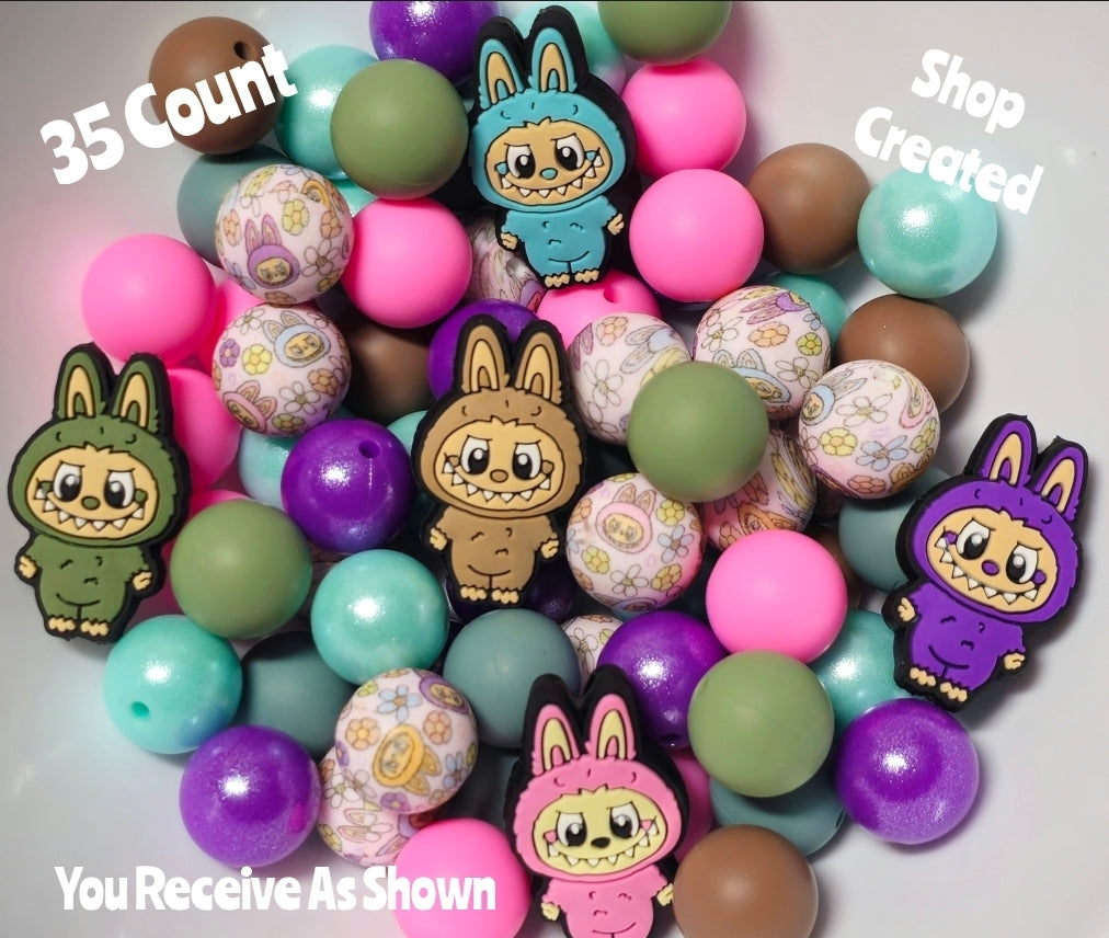 Labubu Silicone Bead Mix DIY Craft Supplies 35 Count 15mm