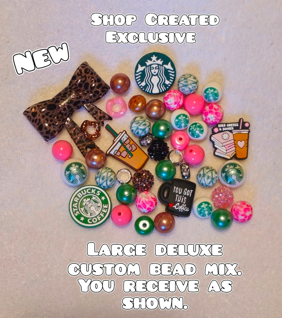 Deluxe Large Silicone & Acrylic Bead Mix Starbucks Coffee Books Bows
